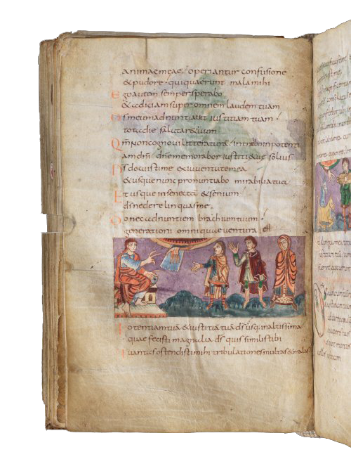 Opschrift in rode letters op vorige bladzijde: David. Psalm van de zonen van Jonadap en van eerdere ballingen. Stem van Christus tot de Vader.
